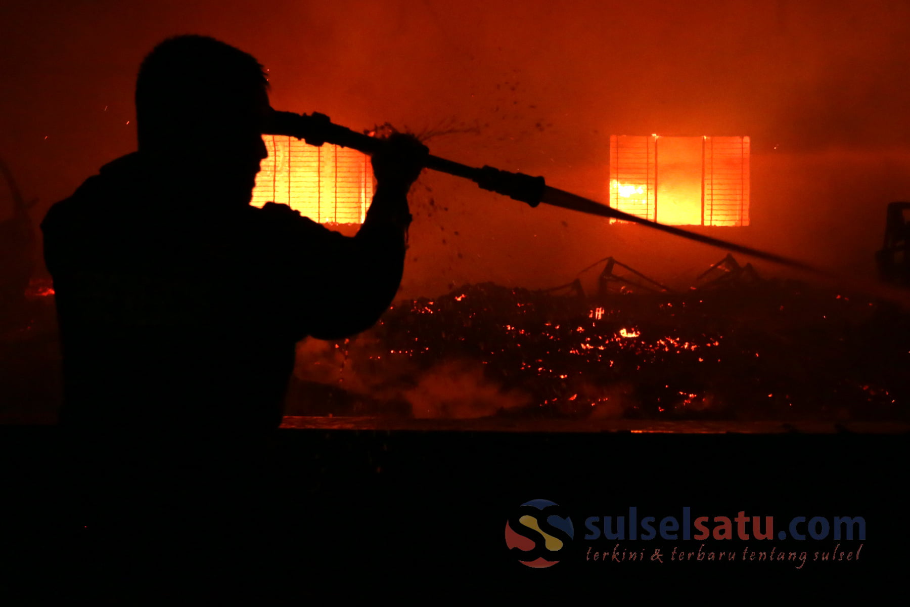 SULSELSATU.com, MAKASSAR – Si jago merah melalap gudang penyimpanan spring bed di Kawasan Industri Makassar (KIMA) 10, Rabu (29/1/2020) dini hari.