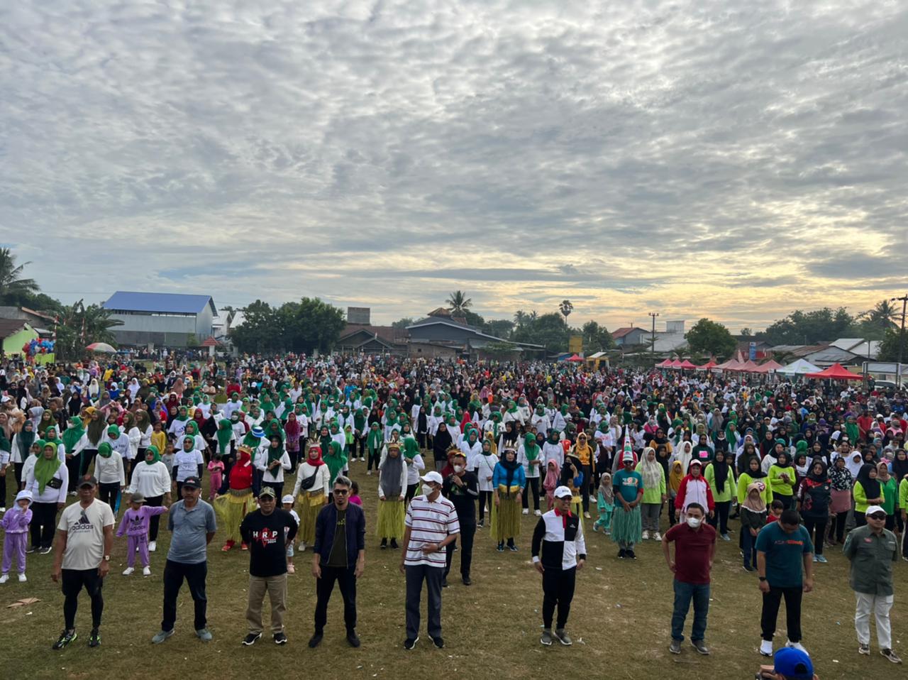 Hal itu terlihat saat lautan manusia memadati senam sehat yang digelar Aura Community di Lapangan Sepak Bola Desa Barembeng, Kecamatan Bontonompo, Gowa, Minggu (7/8/2022).