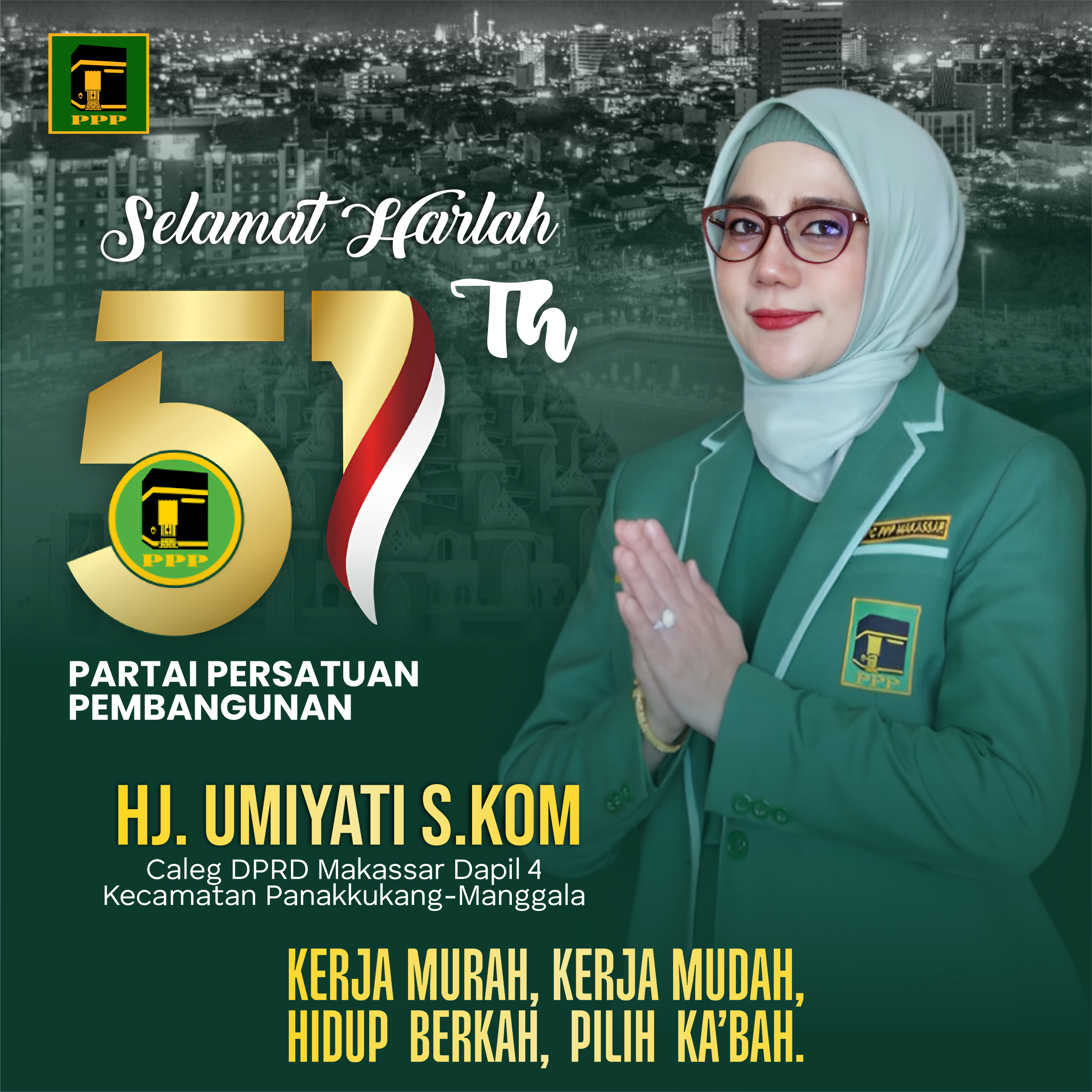 “Apalagi tema Harlah kali ini adalah Harga Murah, Kerja Mudah, Hidup Berkah, Pilih Ka’bah. Tentu saja tidak sekadar slogan, kami menjalankan itu dan tentu begitu diberi amanah duduk di DPRD Makassar, tentu tanggung jawabnya menjadi besar,” ungkap Umiyati.