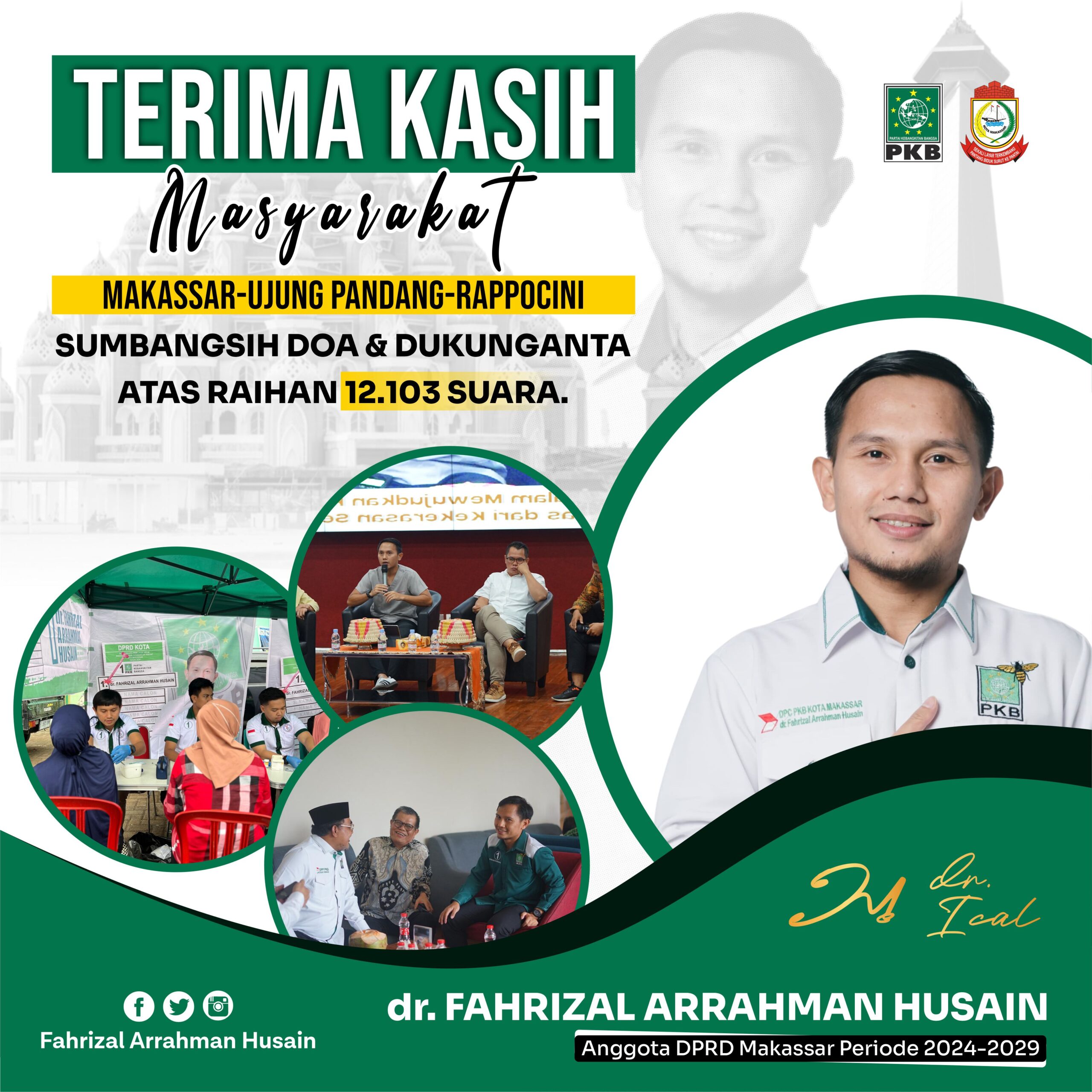 Dokter Ichal sapaannya berhasil pecah telur di Dapil Makassar 1 meliputi Kecamatan Kecamatan Ujung Pandang, Makassar, Rappocini dengan raihan 12.103 suara lewat Partai Kebangkitan Bangsa (PKB).