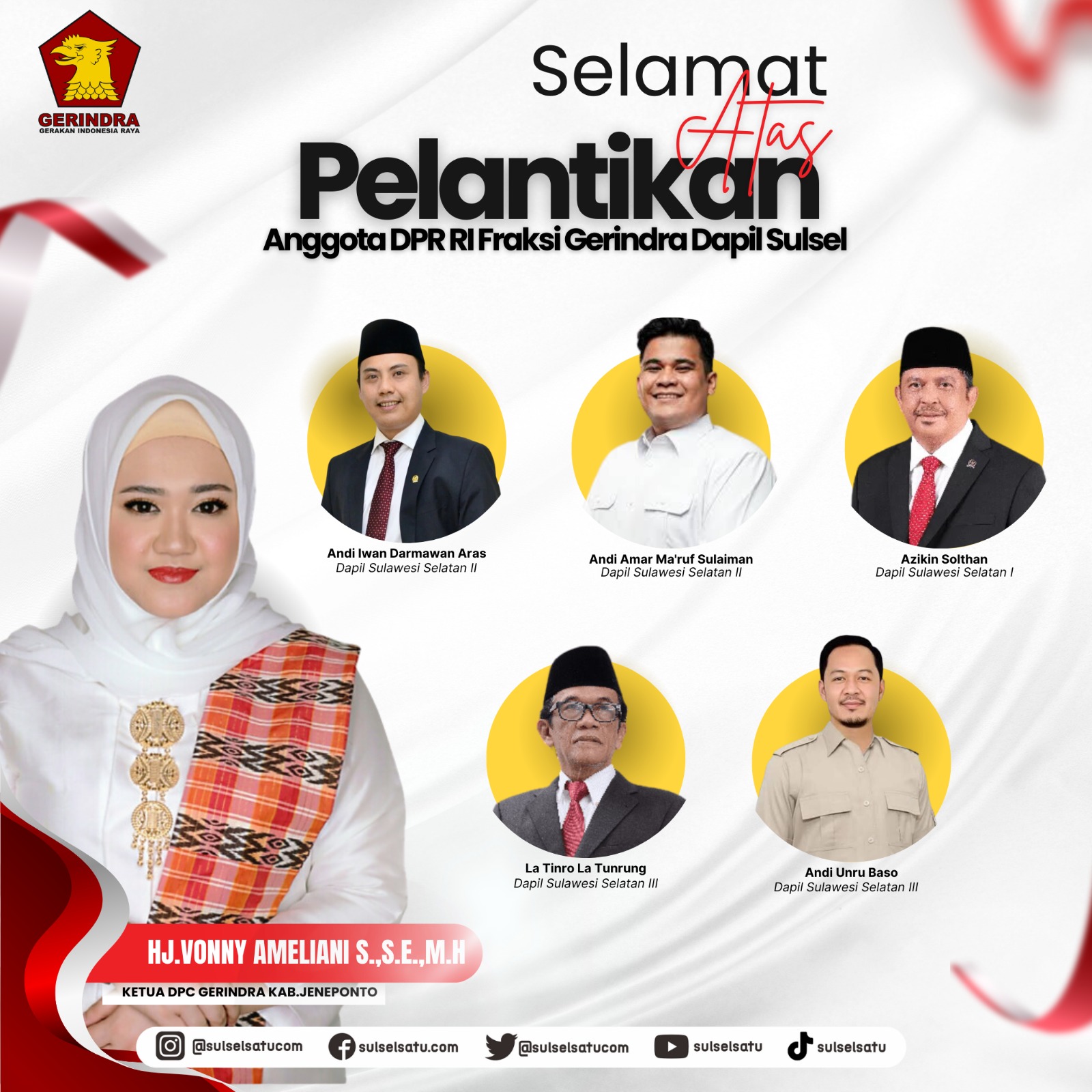 Kelimanya yakni Ketua DPD Gerindra Sulsel Andi Iwan Darmawan Aras, Andi Amar Ma’ruf putra Menteri Pertanian Andi Amran Sulaiman, Azikin Solthan, Andi Unru Baso dan La Tinro La Tunrung.