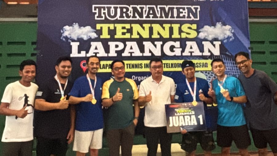 Foto bersama juara 1 tennis lapangan Bank Sulselbar. Foto: Istimewa.