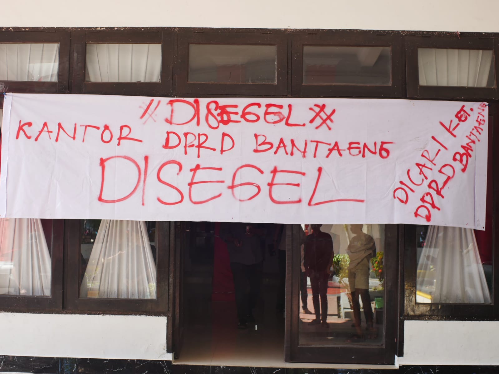 SULSELSATU.com, Bantaeng – Massa Serikat Buruh Pertambangan dan Industri (SBIPE) Bantaeng melakukan aksi simbolik dengan menyegel kantor DPRD Bantaeng, Kamis (11/9/2025) sekitar pukul 13.30 WITA. Buruh menempel spanduk besar di bagian depan pintu utama bertuliskan “KANTOR DPRD BANTAENG DISEGEL”.
