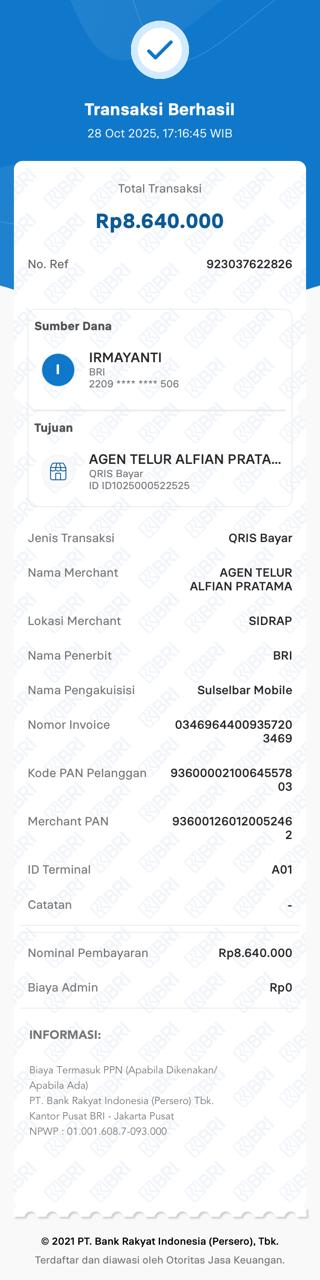 “Ke depan, penerapan QRIS akan terus diperluas ke berbagai bidang pelayanan publik agar manfaat transaksi digital semakin dirasakan seluruh lapisan masyarakat Sidrap,” pungkasnya.