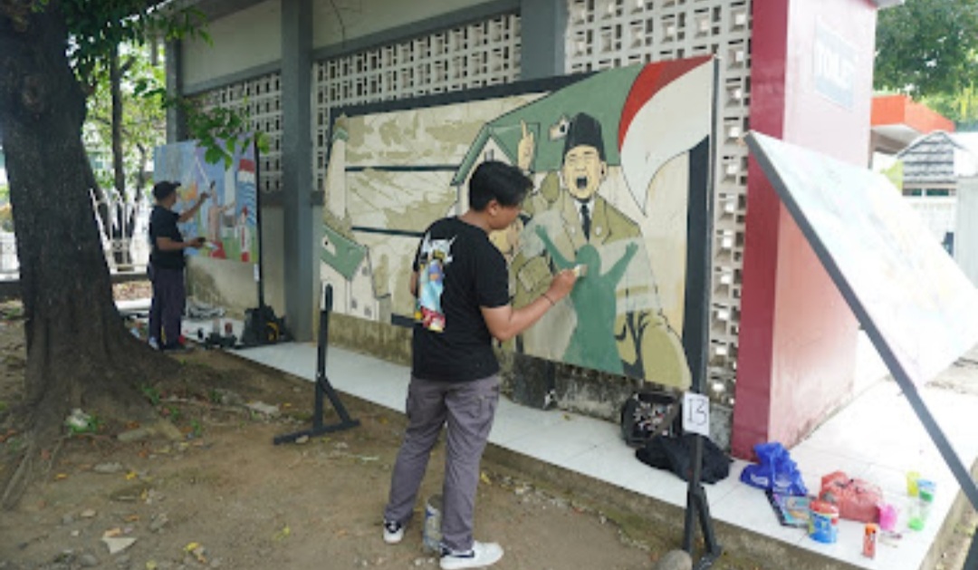 Hari kedua, area Monumen Mandala berubah menjadi kanvas publik yang hidup, di mana sejarah bertemu ekspresi kontemporer dalam bentuk mural yang penuh makna.