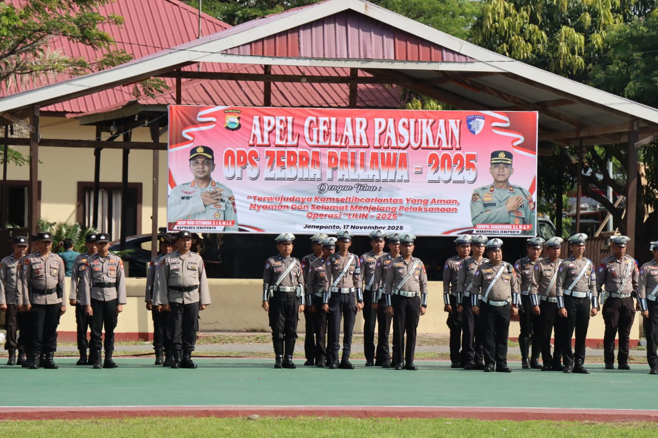 Polres Jeneponto sebelumnya telah menggelar latihan pra-operasi (Latpra Ops) zebra yang berlangsung di Aula Pesat Gatra Polres Jeneponto, Sabtu (15/11/2025).